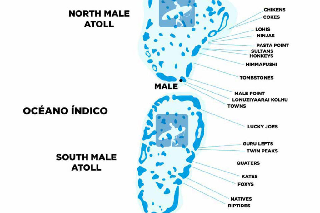 Navegamos por los atolones centrales y del norte de Maldivas, donde se encuentran las olas más consistentes y menos concurridas, Sultans, Honky’s, Jailbreaks, Cokes, Ninjas…